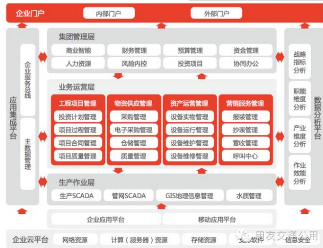 在國(guó)家政策和市場(chǎng)化運(yùn)行支持下,水務(wù)行業(yè)正處在高速發(fā)展時(shí)期,通過并購(gòu)和戰(zhàn)略合作進(jìn)一步拓展產(chǎn)業(yè)鏈,不斷做強(qiáng)做大,因此,對(duì)于水務(wù)企業(yè)來(lái)說(shuō),需要通過信息化實(shí)現(xiàn)以下功能: